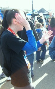 A young boy, running laps, while his older brother skulked around the soccer pitch in the middle of the stadium, stopped in amazement and yelled out “WOW!” as M and I tore down lanes six and seven.